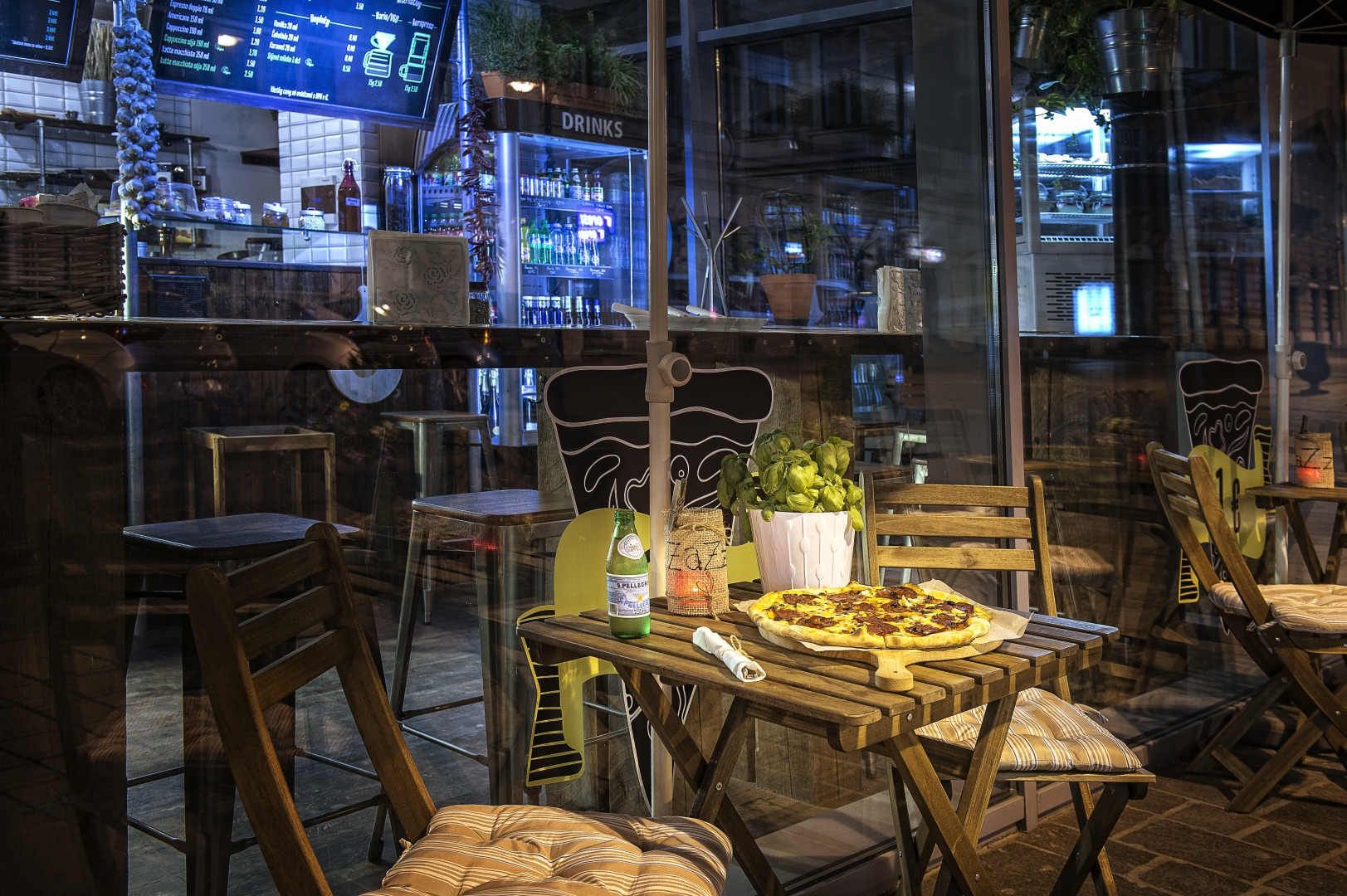 Pomodoro, mozzarella, saláma, olivy, klobása, oregáno, grilovaná cuketa